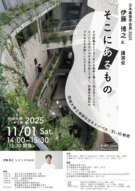 11/1(土)茨城大学工学部日立キャンパスで行われる「こうがく祭」にて、建築家 伊藤博之氏をお呼びし、講演会を行います❗️🎉