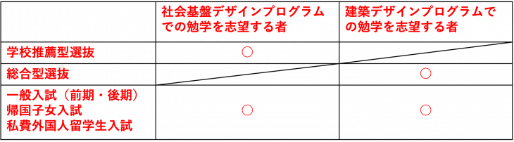 ※2年生から社会基盤デザインプログラム又は建築デザインプログラムの所属に分かれますが、所属学生数には制限があります。 詳細は受験生からのよくある質問をご覧ください.